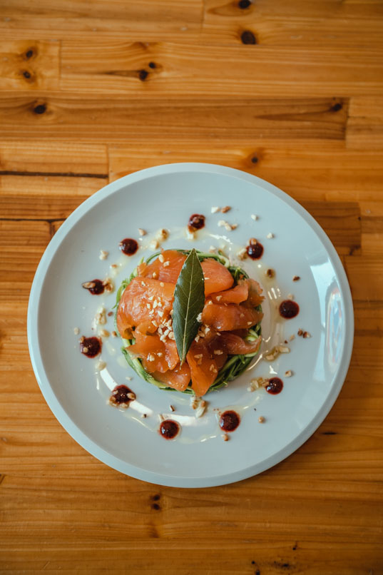 Sul momento abbiamo cercato di sfilare una piccola classifica, purtroppo l’indecisione regnava sovrana.C’è solo una certezza: non potremmo più fare a meno della trota affumicata a crudo, su zucchine marinate, granella di nocciole e olio al mirtillo.