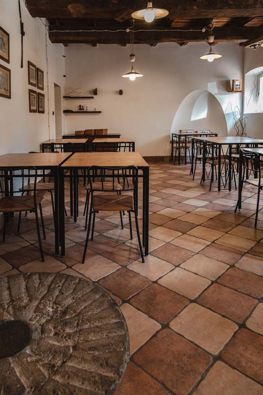 Diciamoci la verità: è la parte che tutti aspettavamo di vedere (e di provare). La sala è “less is more” perfetta nella sua semplicità. L’atmosfera è quasi toscaneggiante, e colpo di scena, tutto questo prima era una piccola stalla con annesso mulino. Lorenza infatti ci ha fatto notare dei piccoli dettagli che i più attenti potranno riconoscere nelle foto.