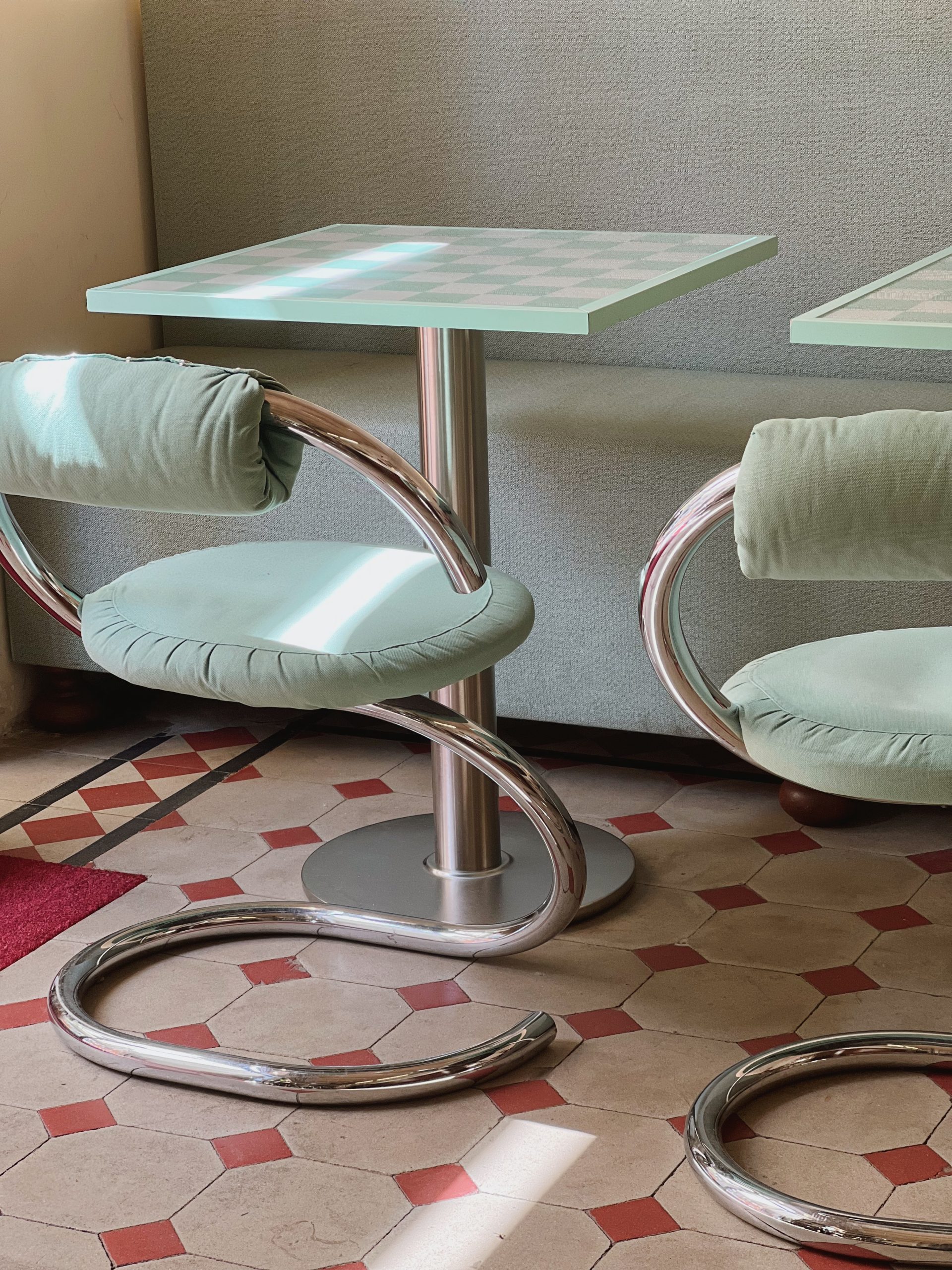Ciò che più ti attrae di Coke Tales è il suo fascino di altri tempi, tra sedie di design anni ’70, colori pastello, affreschi e i dipinti sulle pareti in perfetto Stile Liberty (come si fa a non amarli!?).