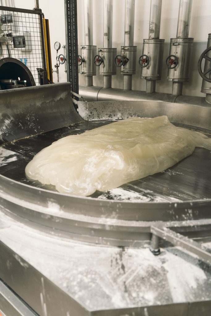 Ma naturalmente alla Fabbrica Leone non creano solo le pastiglie. Abbiamo avuto la fortuna di osservare la creazione delle classiche caramelle al limone, divertentissima e meravigliosa. L’impasto di zucchero, oli essenziali e vera e propria frutta viene impastato a caldo fino ad ottenere uno slimer coloratissimo che viene prima raffreddato, poi colato ed estruso a forma di tubo, infine elaborato in formato in caramella. Un prodotto 100% naturale e vegetale, senza coloranti e senza glutine.