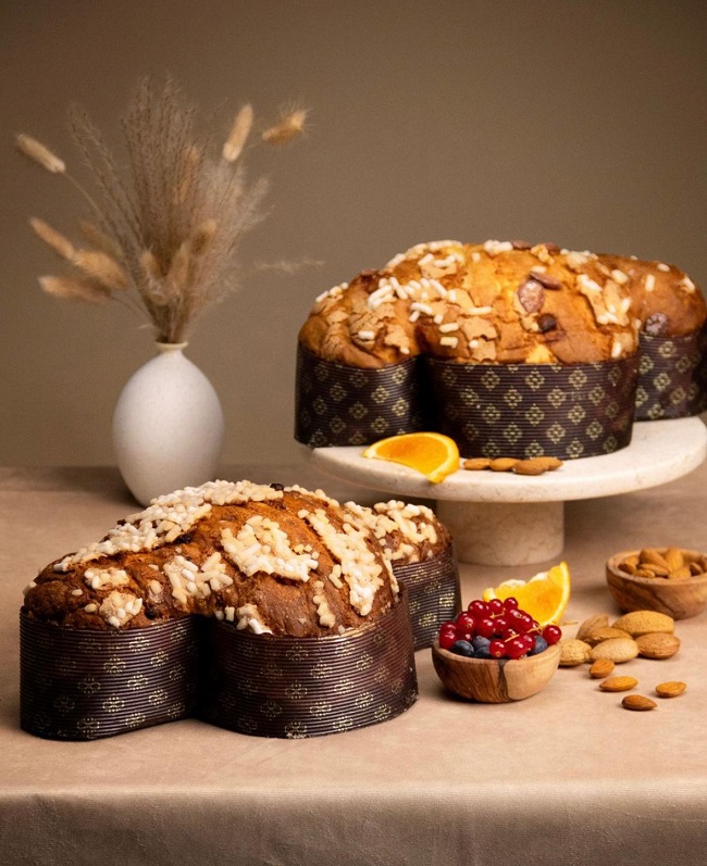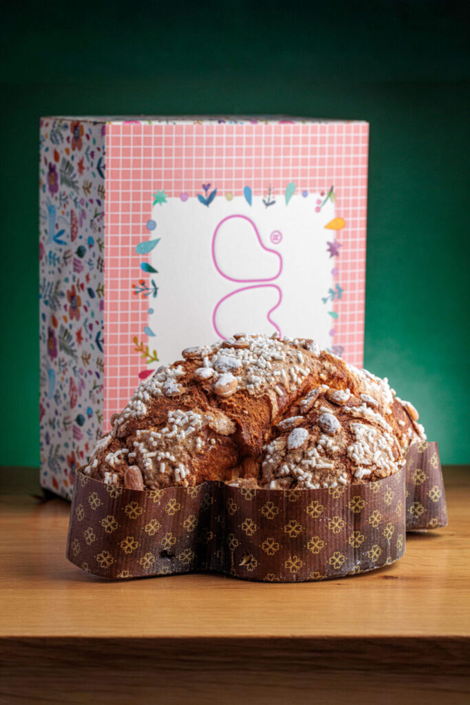 La colomba, proposta nella versione tradizionale, è realizzata con soli ingredienti vegetali e lavorazione artigianale.