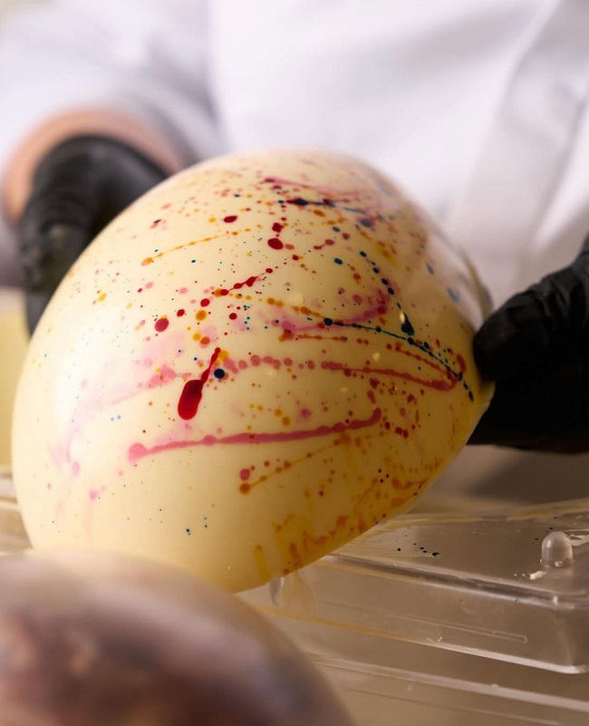 Nel cioccolato invece trova spazio l’eleganza e tutta la creatività di Federico Prodon, tra cui spicca l’uovo Kintsugi con cioccolato Ruby Callebaut, una special edition che unisce arte e filosofia, celebrando la bellezza dell’imperfezione, al quale si uniscono proposte più classiche con cioccolato fondente, al latte con glassa di nocciole tostate e cremino al pistacchio.