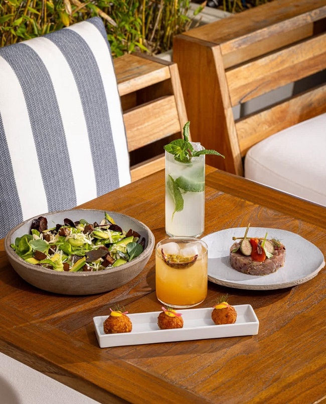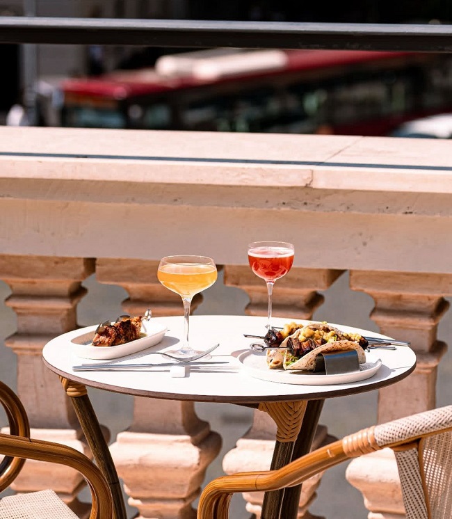 Il Bellini Bar (questo il nome del bar della terrazza) propone cocktail d’impronta italiana, dal noto Bellini a drink ispirati alle isole minori nostrane, come Capri, Ponza o Lipari. Spazio anche a mocktail e drink alcool free, oltre che a una lista di vini in mescita. Quanto al cibo, trovano spazio taglieri di salumi, focaccia, pinzimonio e una selezione d’ostriche.
