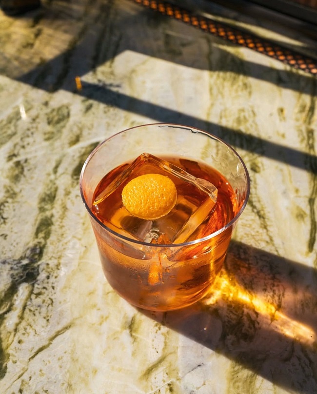 Il menù comprende diverse proposte, tra cui troviamo i classici dell’aperitivo all’italiana, con Negroni e vari tipi di Spritz, una sezione dedicata a vari tipi di Martini e signature cocktail ispirati al mondo del cinema. Spazio anche ai sempre più in voga cocktail analcolici e ovviamente a una fantasiosa proposta food che abbraccia differenti ispirazioni gastronomiche, dall’Italia alla Spagna fino ad arrivare al Giappone.