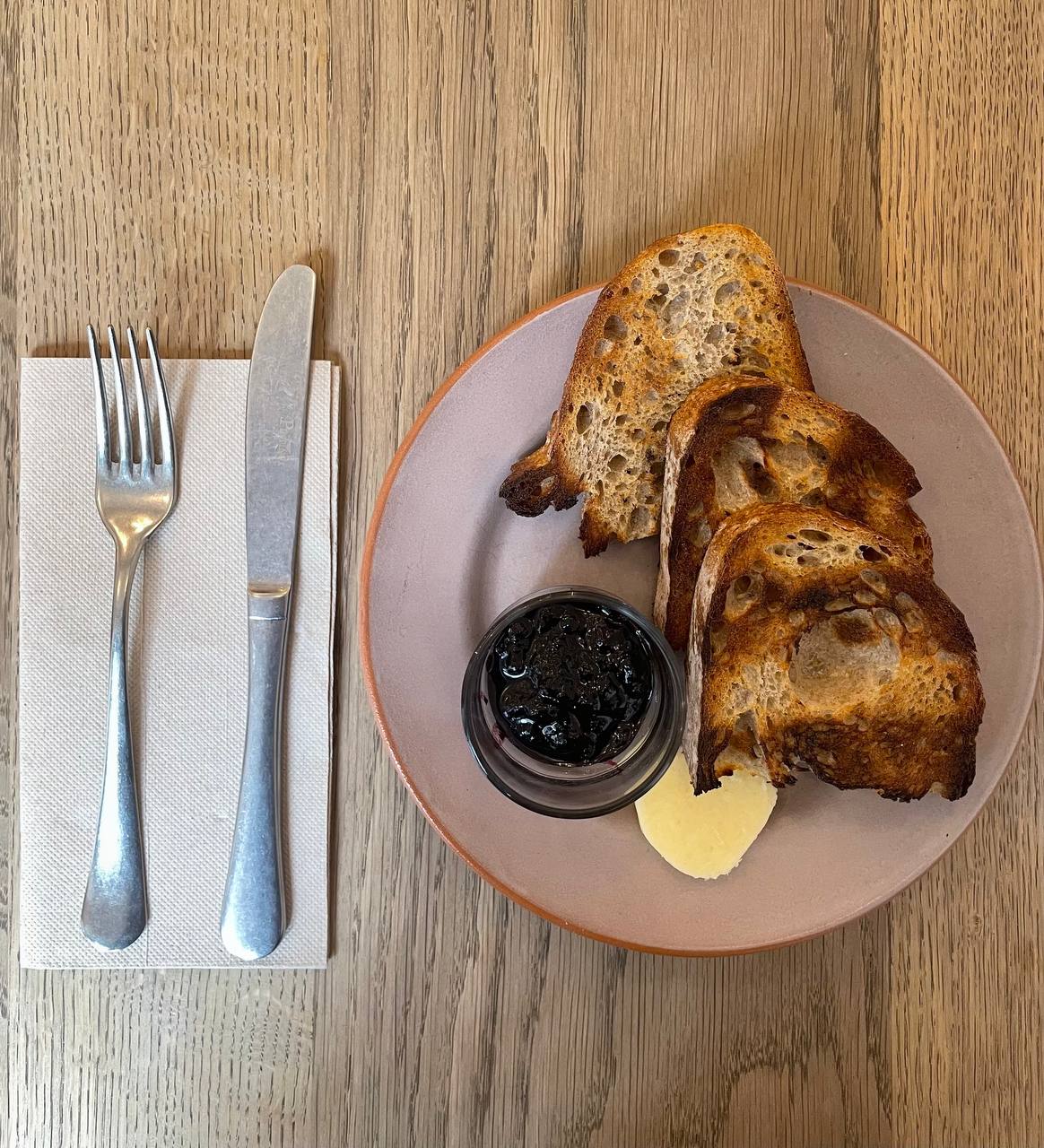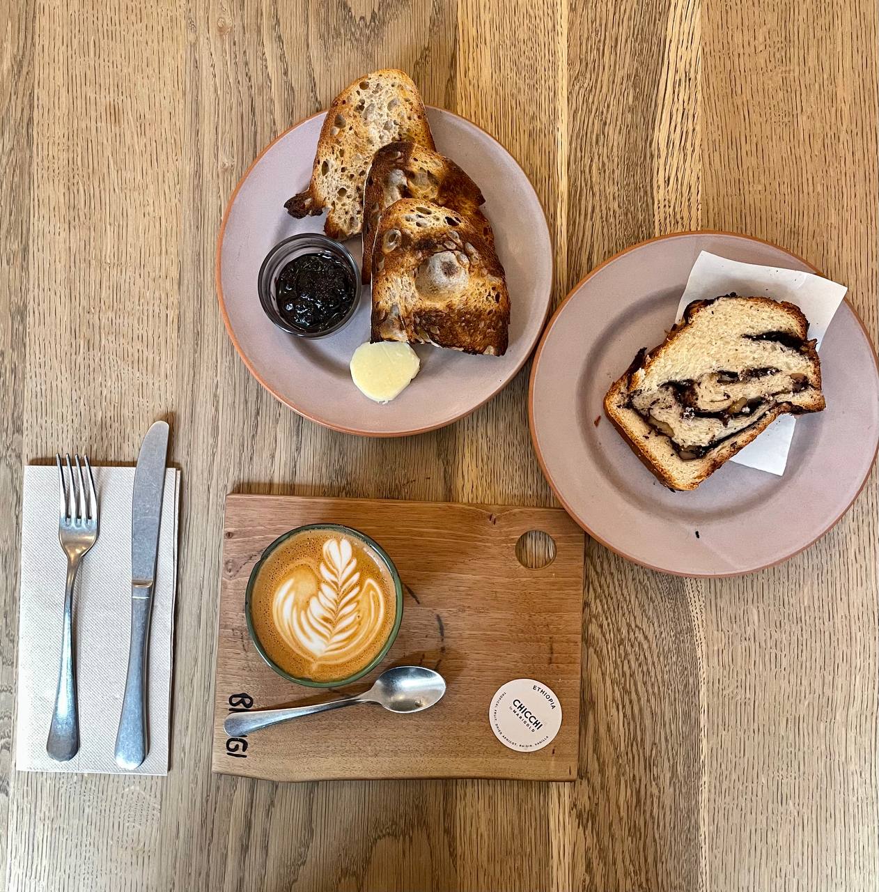 Riempio lo stomaco con un intramontabile classico: pane, burro Marigold e marmellata, tutto rigorosamente fatto in casa. Il primo morso è un ritorno alla felicità, all’infanzia in cui le cose semplici erano le più buone: un sorriso per il palato e lo stomaco. Spinta dalla gola e dalla curiosità, decido di rimandare la dieta ad un altro giorno e aggiungo una fetta di babka al cioccolato con nocciole: si tratta di un dolce che ha origini polacche, dalla consistenza soffice e burrosa, ma non eccessivamente dolce.