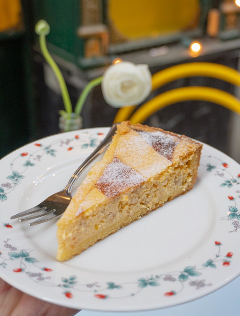 Si dice che tutto parta da lì: sette ingredienti, un dono, una leggenda. La pastiera di Cabaret prende questa storia e la rende concreta: con le sue sette strisce, i profumi di ricotta e fiori d’arancio, e un equilibrio che sta tra tradizione e identità. Una meraviglia napoletana in terra sabauda che non vi deluderà!