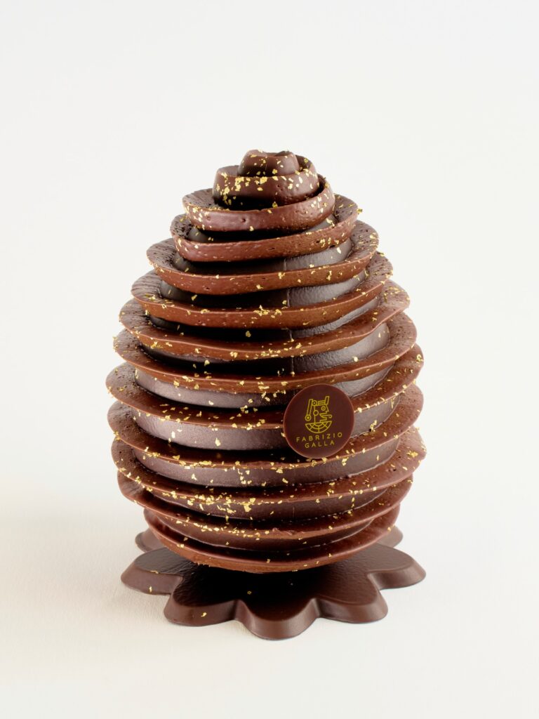 Tra le proposte 2026, due versioni che vanno oltre il gusto. La Junior Kintsugi prende ispirazione dall’arte giapponese che valorizza le imperfezioni: crepe dorate, segni visibili, unicità. Un uovo fondente, equilibrato e profondo, che diventa anche un messaggio: le fratture non si nascondono, si raccontano.