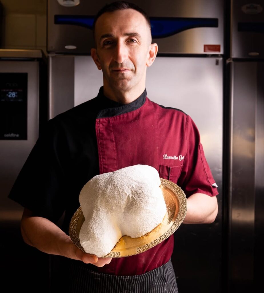 Dietro ogni prodotto c’è una struttura solida: 18 ore di lievitazione naturale, ingredienti selezionati e una tecnica che non lascia spazio al caso. Le colombe di Fabrizio Galla nascono così: con una lavorazione che punta alla leggerezza, ma anche a un gusto pulito, riconoscibile. Tre le varianti: la classica, essenziale e ben bilanciata; pere e cioccolato, più rotonda e avvolgente; e la mandarino, pesca e albicocca senza lattosio, realizzata con olio evo, pensata per essere fresca, profumata e più inclusiva senza perdere struttura.
