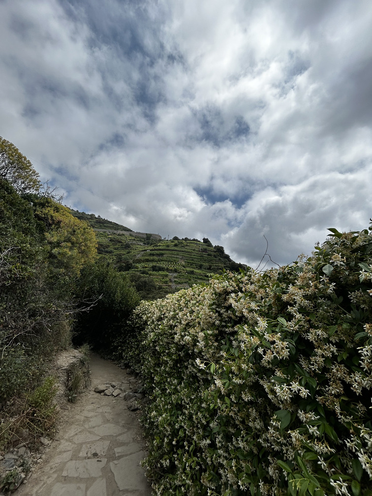 Sarà stata la sveglia all’alba, sarà stata la fatica accumulata dal giorno prima, sarà stata la scomodità della sistemazione per la notte (ve l’ho detto che con Enrico finisce sempre a dormire alla bell’e meglio), ma la prima tappa del secondo giorno, da Corniglia a Riomaggiore, è stata tra le più impegnative. 6 km e mezzo che si allontanano dal mare per alzarsi sulle vicine montagne appenniniche, tra arbusti e piante profumate di tiglio e gelsomino. Il sentiero si snoda attraverso più tappe intermedie, prima la silenziosa Volastra, poi Manarola (quarta delle Cinque Terre), ma senza entrarci, e infine Riomaggiore.
