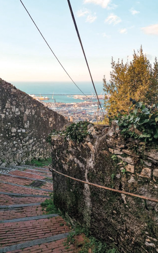 Di essere una camminatrice, me ne accorsi durante gli anni del liceo, proprio grazie alla mia città. Mi piaceva uscire di casa e recarmi ovunque possibile, a piedi. Mi piacque ancora di più, quando mi accorsi che il viaggio in auto o in scooter di un quarto d’ora, animato da nervosismo e tensione alla guida, si allungava solo di una decina di minuti andando a piedi. Ebbene sì, stentate a crederci? Forse perché non tutti conoscono la fittissima rete di crêuze della nostra Genova: scalette, strettissimi vicoletti, o ampie mattonate che si srotolano ripide dai monti fino al mare. Da alcuni punti della città ne bastano due o tre per arrivare in dieci minuti da Castelletto a Principe, o da via Balbi a Righi. Se poi aggiungiamo al percorso un viaggio in funicolare, anche la fatica della salita ci è risparmiata!